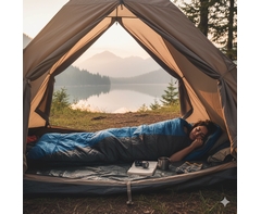 Idead for temperatures of -5 to +15 degrees. Waterproof material. With inner 200g air cotton and 30cm padded pillow section. Includes Nylon Carry Bag with adjustable straps