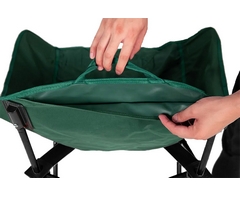 Featuring a X-quadruple steel frame structure with 16mm poles and non-slip feet. Designed with a wide seat for comfort and holds a capacity of up to 100kg. With a side pocket for your phone or other small personal items and an open compartment at the back of the chair, where you can add a cushion for extra support.