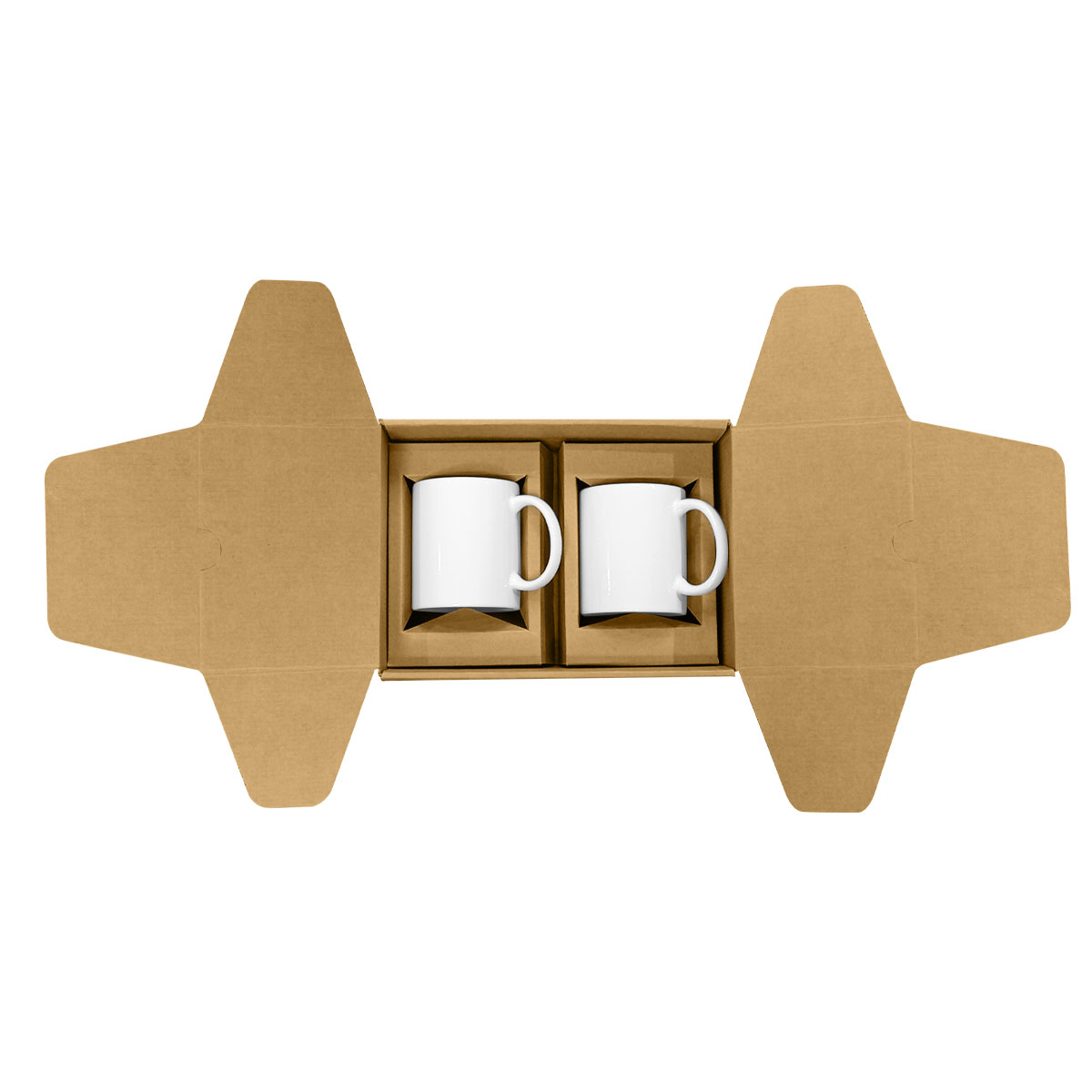 Sublim Pure Mug Set features two pristine white ceramic mugs with a glossy finish, designed for vibrant full-wrap sublimation printing. With a generous 330ml capacity, this giftset is perfect for showcasing your brand in elegant style.