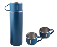 500ml Flask has double-wall stainless steel insulation, keeping beverages hot and cold. With a Hermetic vacuum seal, ensuring perfect waterproofing and an odourless inner lining. Includes 3 x 120ml matching mini mugs, perfect for sharing coffee, tea or a cold beverage, that also fit on the flask as a lid.