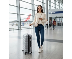 Includes Main Zip Compartment, Inner Zip Compartment, Top Handle, Side Handle and Combination Lock. With Retractable Handle and 4 x Rotatable Wheels