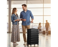 Includes Main Zip Compartment, Inner Zip Compartment, Top Handle, Side Handle and Combination Lock. With Retractable Handle and 4 x Rotatable Wheels